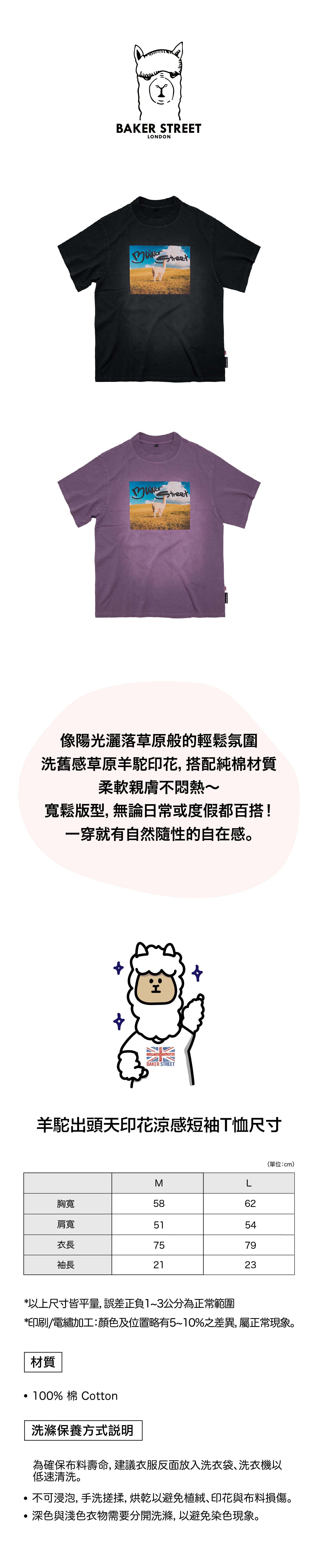 Grassland Alpaca Washed Print Short Sleeve T-Shirt