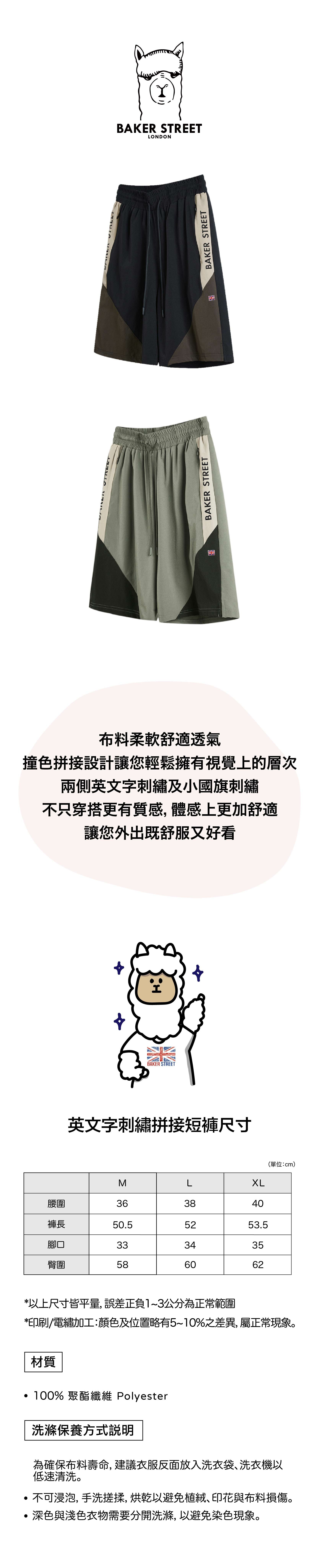 英文字刺繡拼接短褲